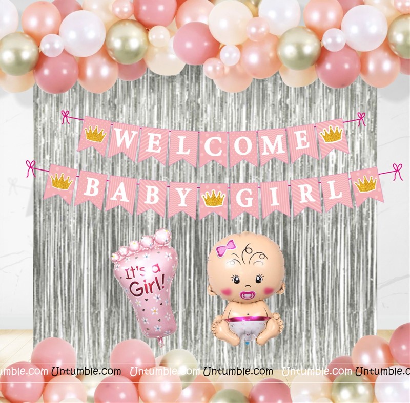 Baby Girl Welcome Home Foil Decor Kit Gold (Pack of 45 pcs)