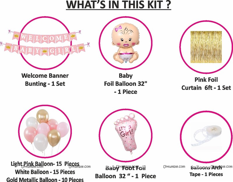 Baby Girl Welcome Home Foil Decor Kit Pink (Pack of 45 pcs)