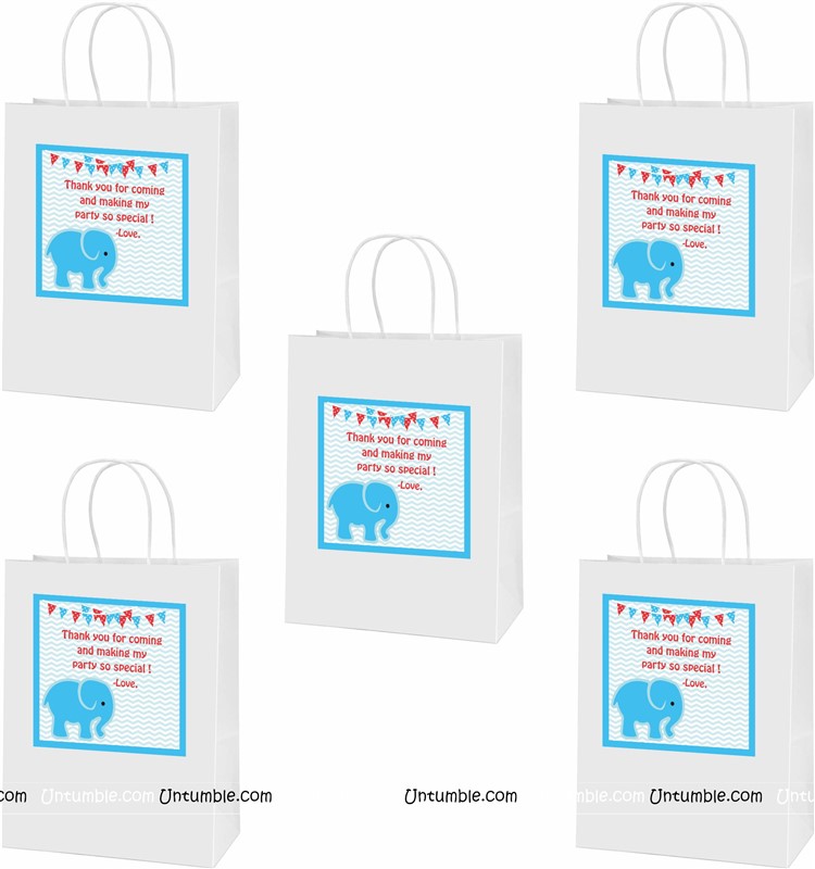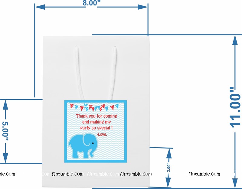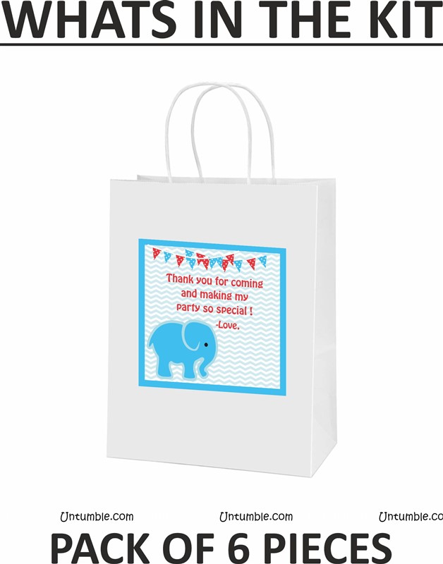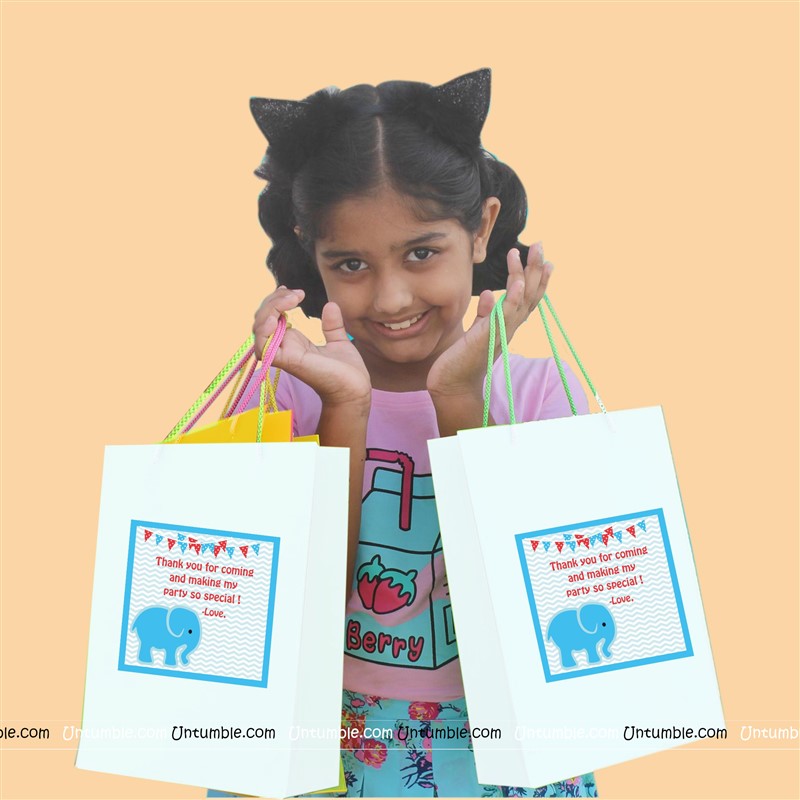 Customized return gift bag based on the theme. White bag with a theme based customized sticker on the front side.