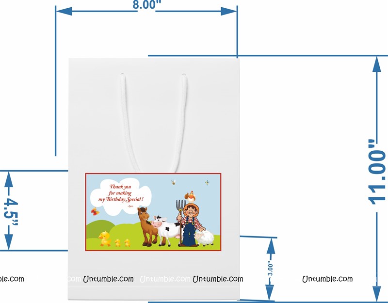 Customized return gift bag based on the theme. White bag with a theme based customized sticker on the front side.