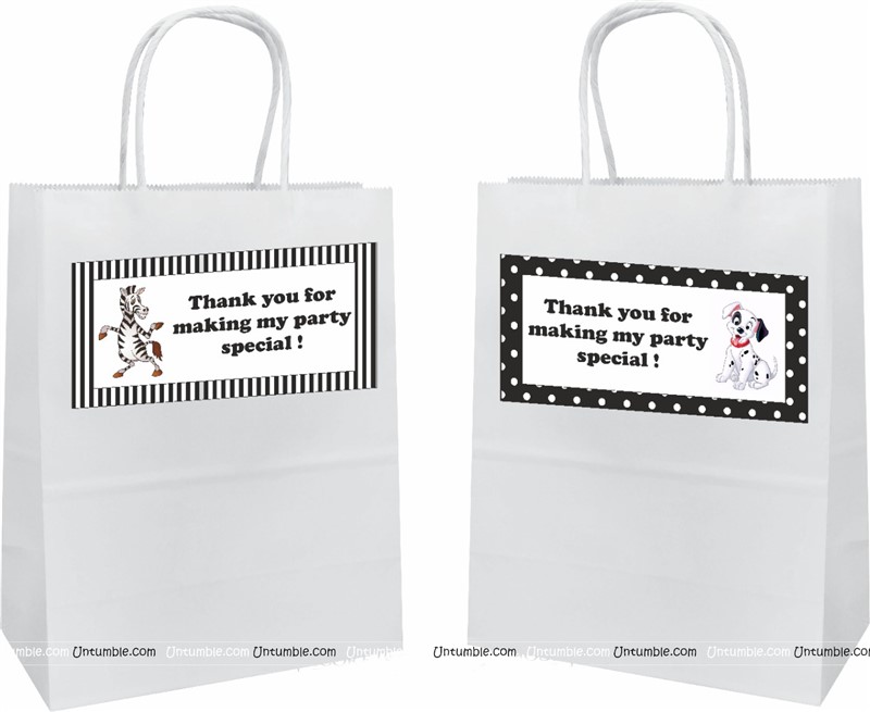 Customized return gift bag based on the theme. White bag with a theme based customized sticker on the front side.