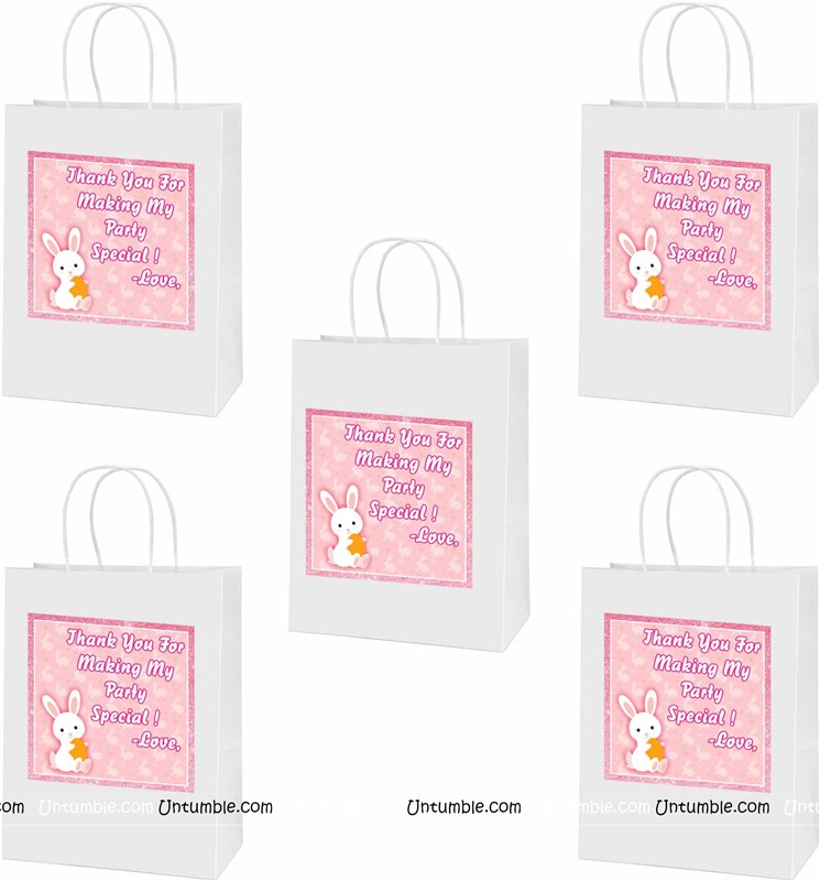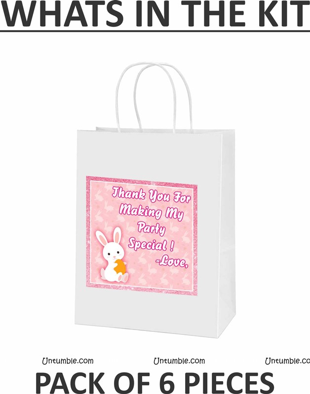 Customized return gift bag based on the theme. White bag with a theme based customized sticker on the front side.