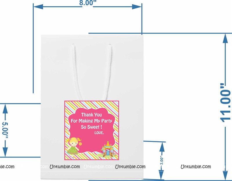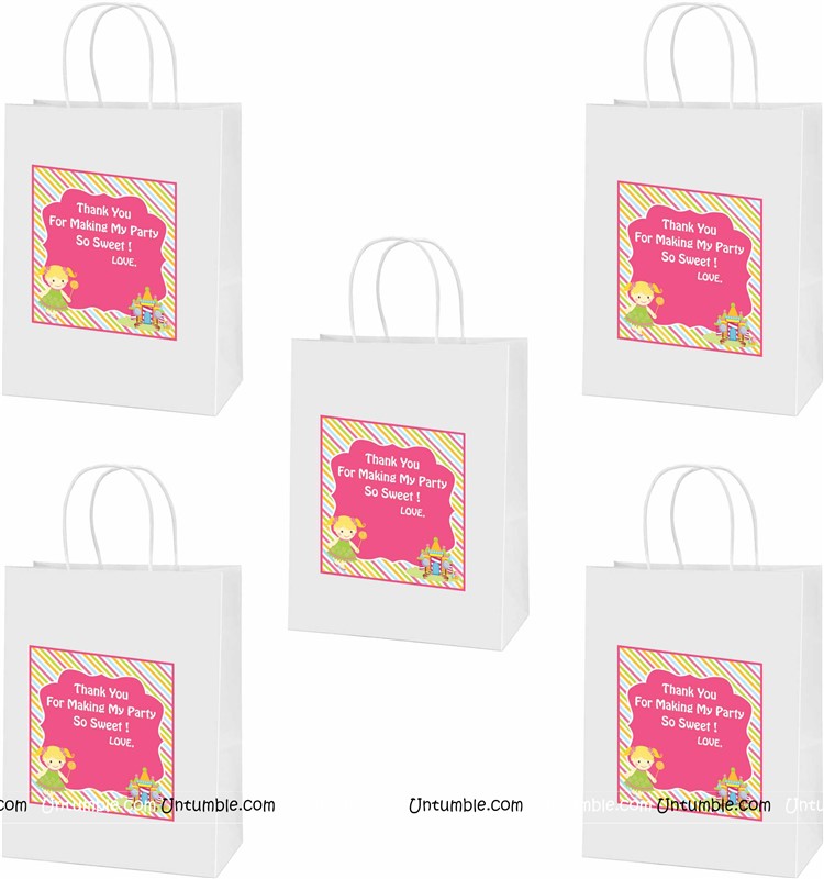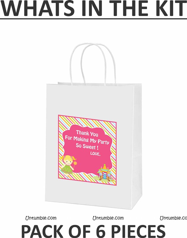 Customized return gift bag based on the theme. White bag with a theme based customized sticker on the front side.