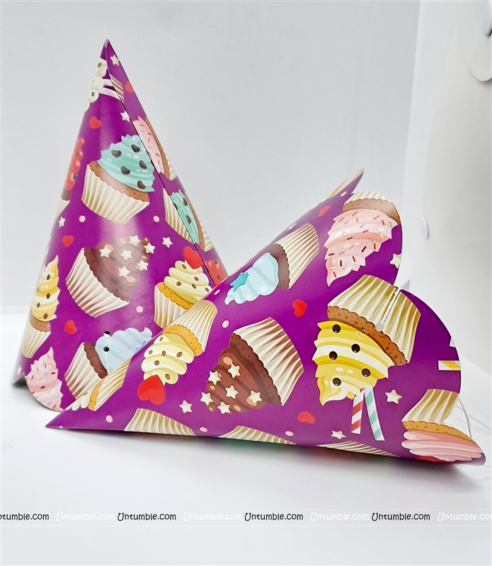 A party is incomplete without hats. These fully customized hats are printed to the theme and can incorporate a name and a snippet of text.
