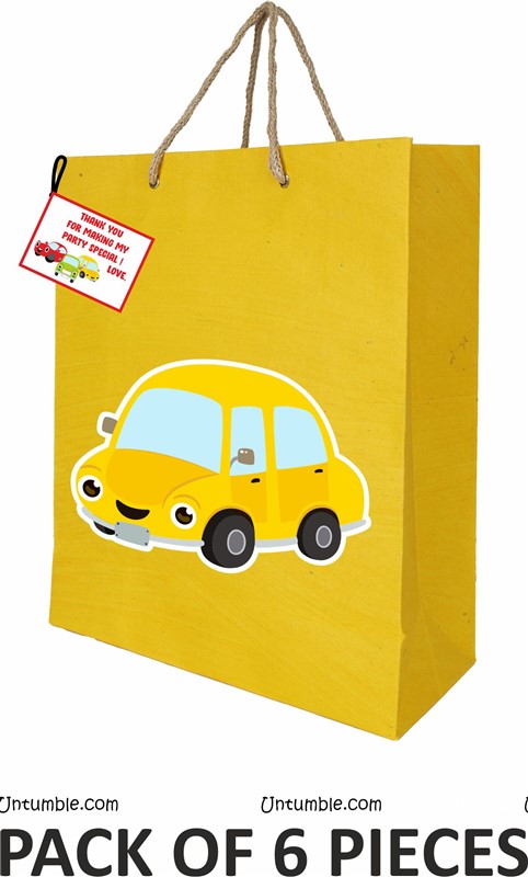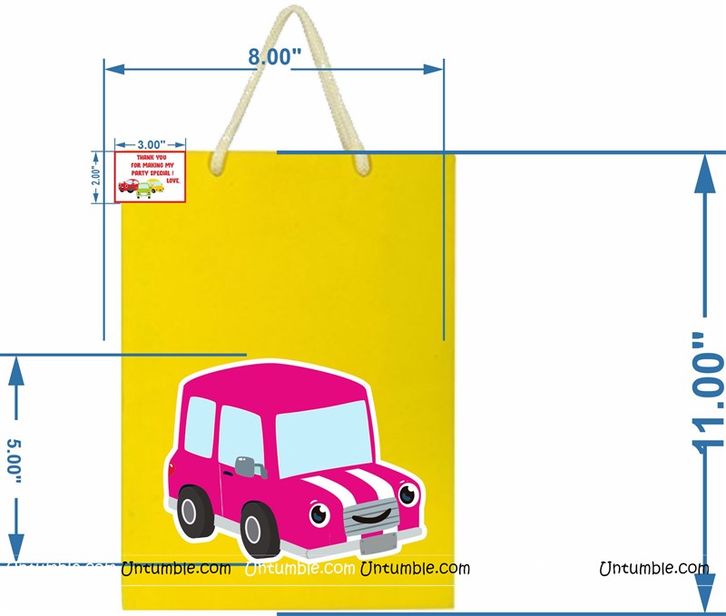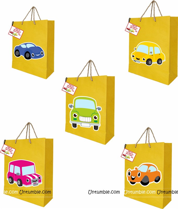 Customized return gift bag based on the theme. White bag with a theme based customized sticker on the front side.