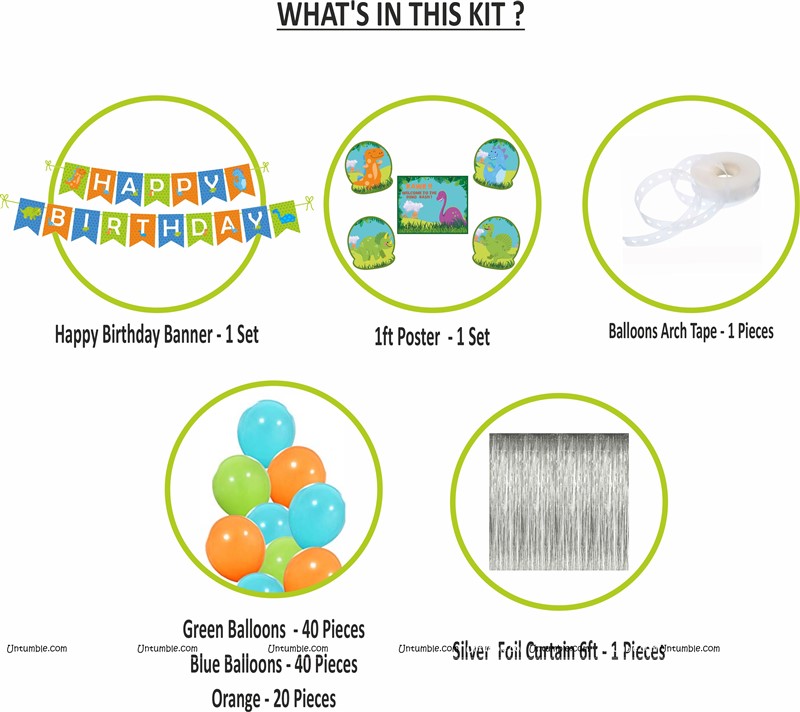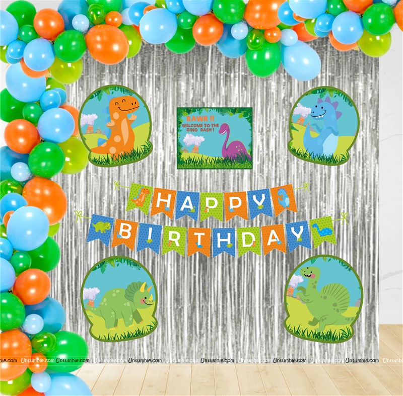 Dino theme Super saver birthday decoration kit (pack of 58 pcs)