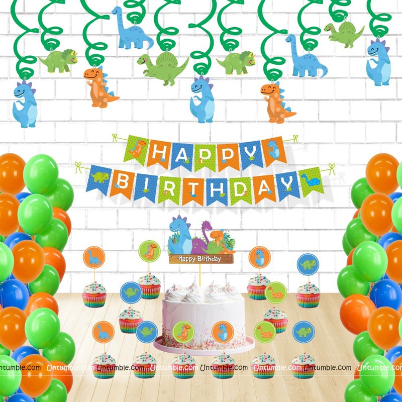 Dino theme Super saver birthday decoration kit (pack of 58 pcs)