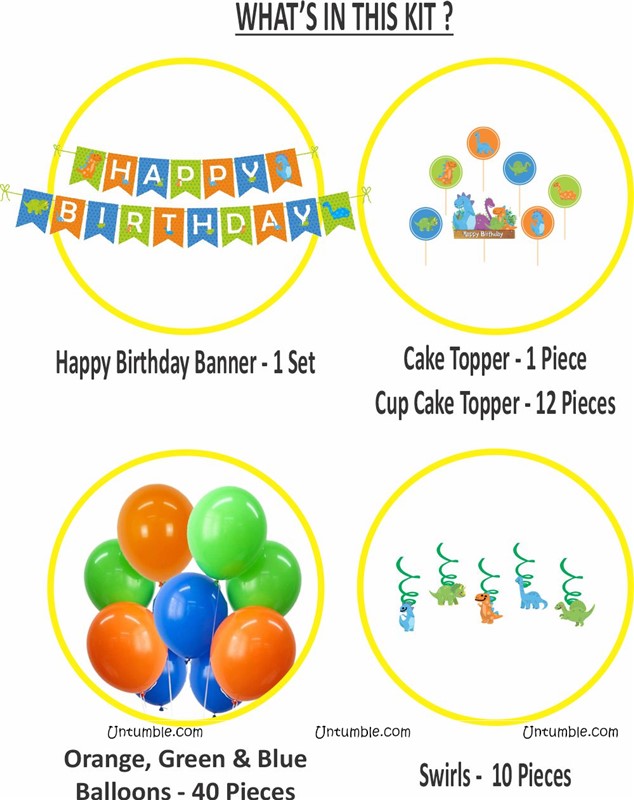 Birthday Decoration kits with Swirls, Banners, Balloons, Posters and more#swrils