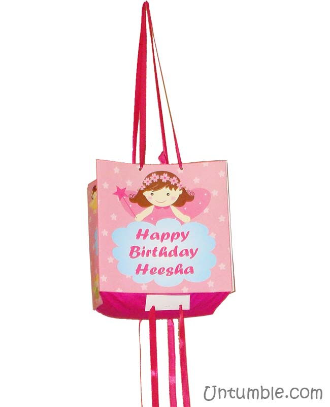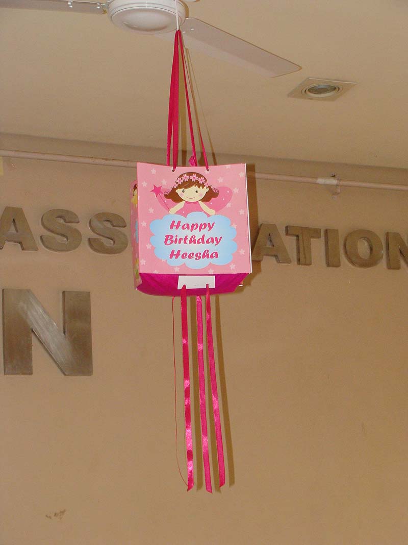 A pinata is a ceiling hanging that has goodies in it. As part of a game it is hit/pulled to release the goodies inside. Price mentioned is exclusive of goodies.