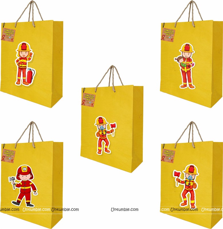 Customized return gift bag based on the theme. White bag with a theme based customized sticker on the front side.