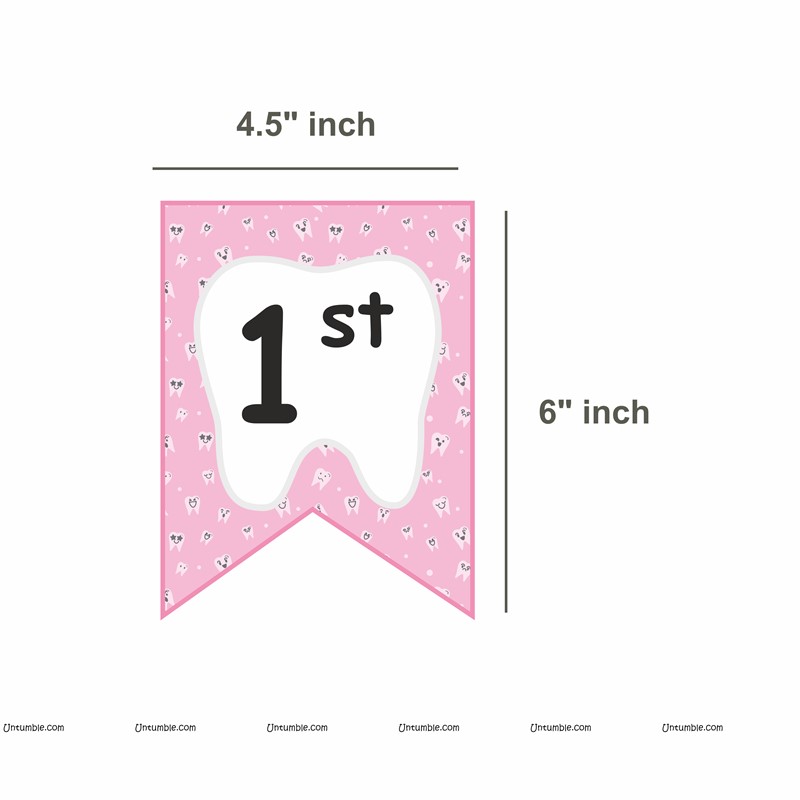 Pink First Tooth Banner, Triangle Bunting and Tooth Poster Kit (Pack of 3)