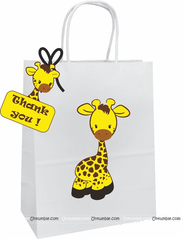 Customized return gift bag based on the theme. White bag with a theme based customized sticker on the front side.