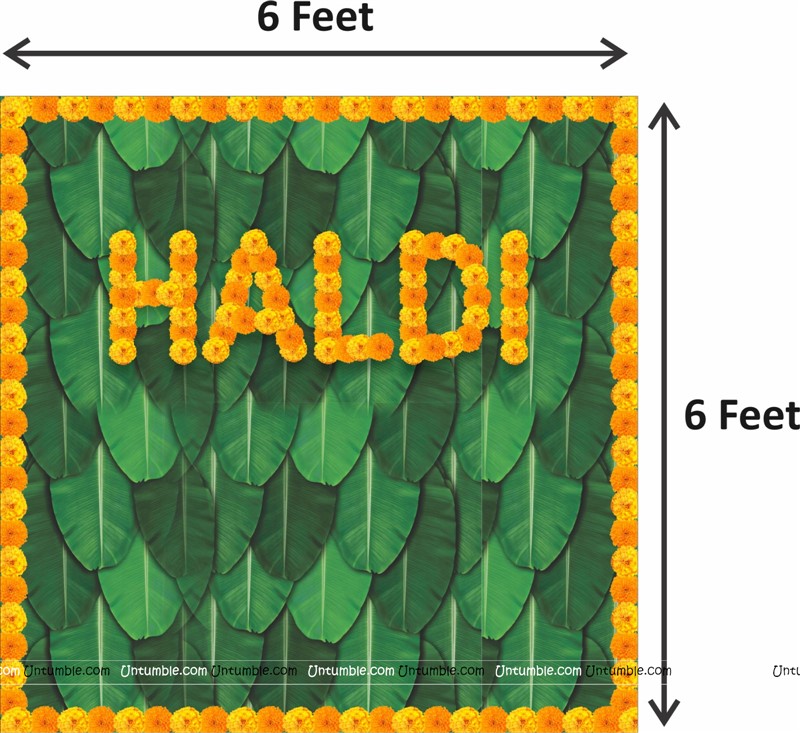 Haldi Ceremony festive Backdrop Banner with a Banana Leaf print on cloth for a stage setup