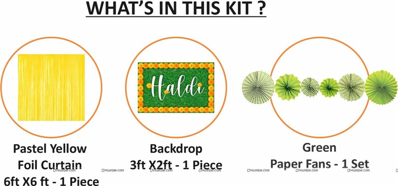 Haldi Foil Kit with Backdrop and Green Paper Fans