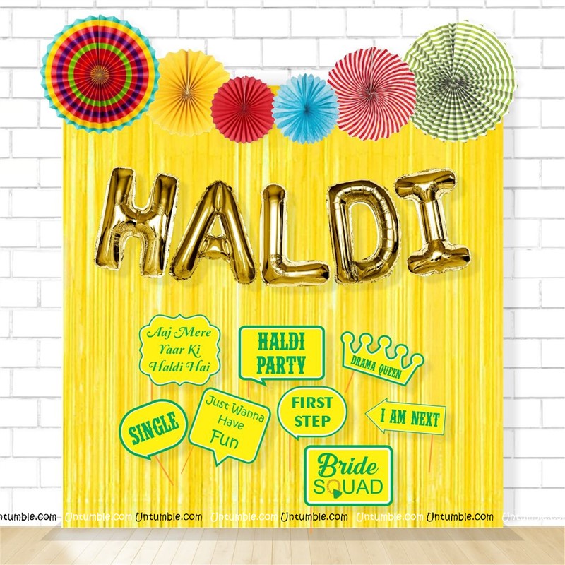 Haldi Foil Kit with Backdrop (Gold )