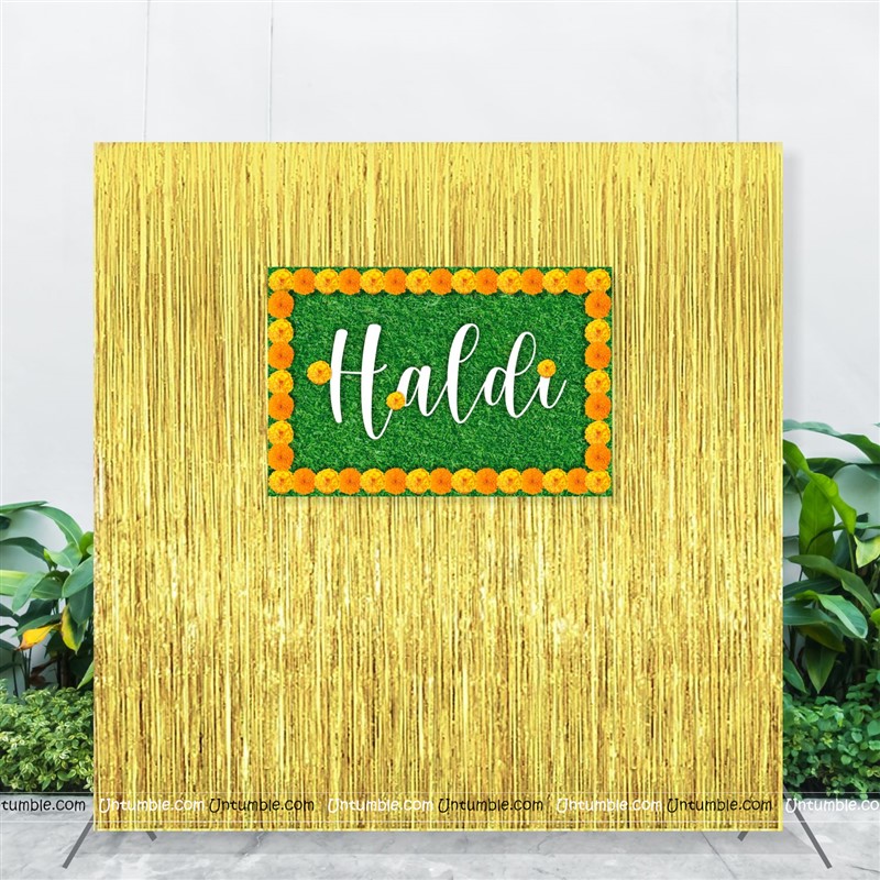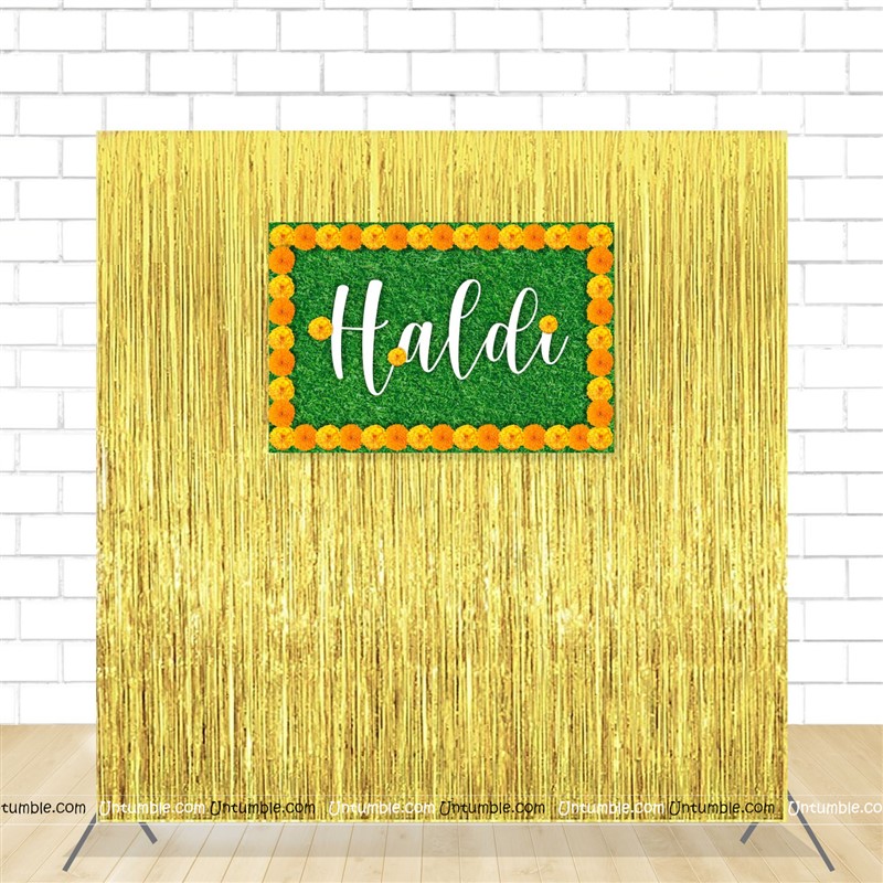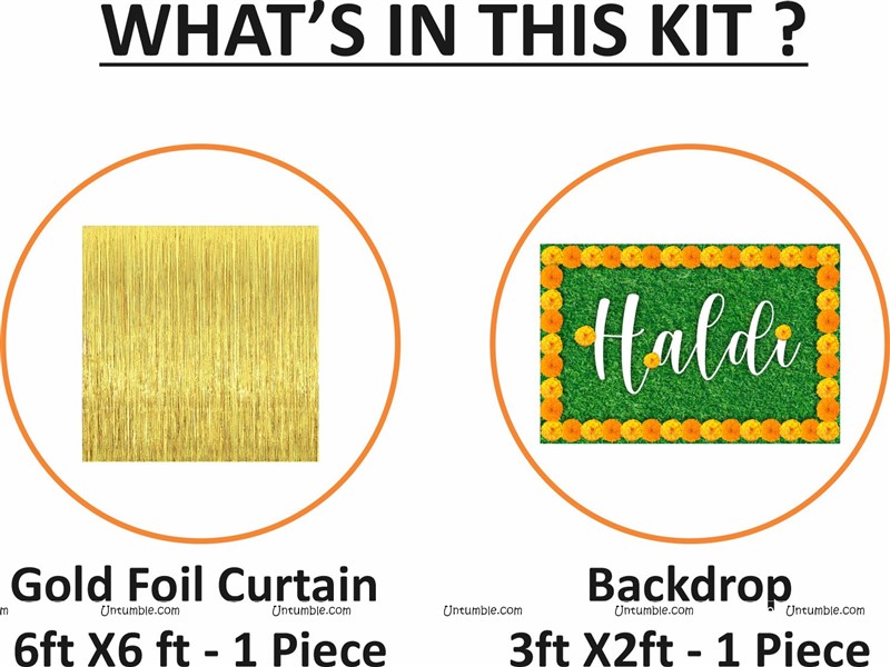 Haldi Foil Kit with Backdrop and Green Paper Fans
