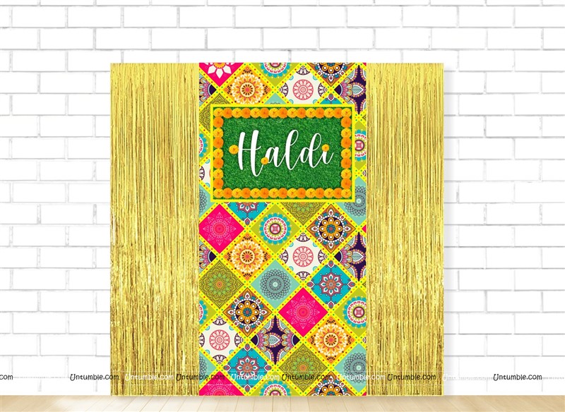 Haldi Foil Kit with Backdrop and Green Paper Fans