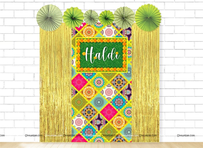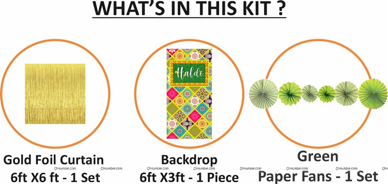 Haldi Foil Kit with Backdrop and Green Paper Fans