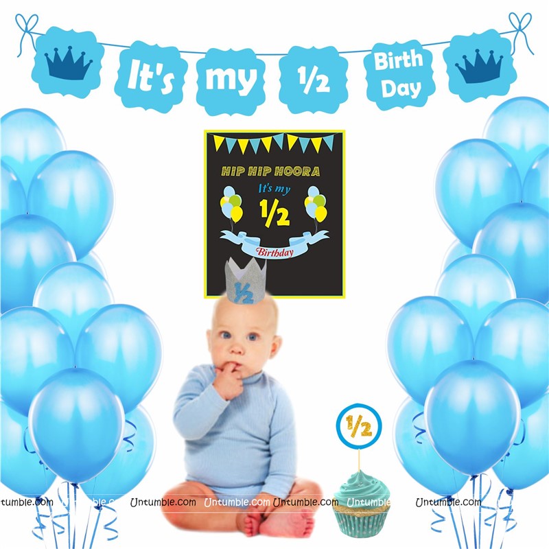 Half Birthday Backdrop and paper Fan Kit ( blue)