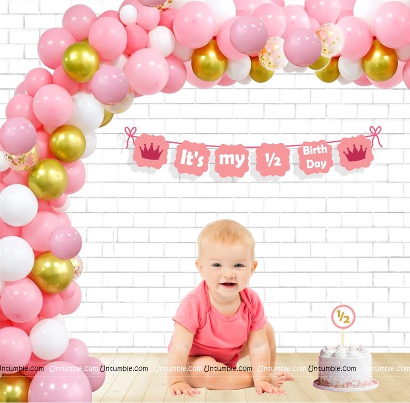 Half Birthday Balloon Banner Kit for Six Month Babies, Pink