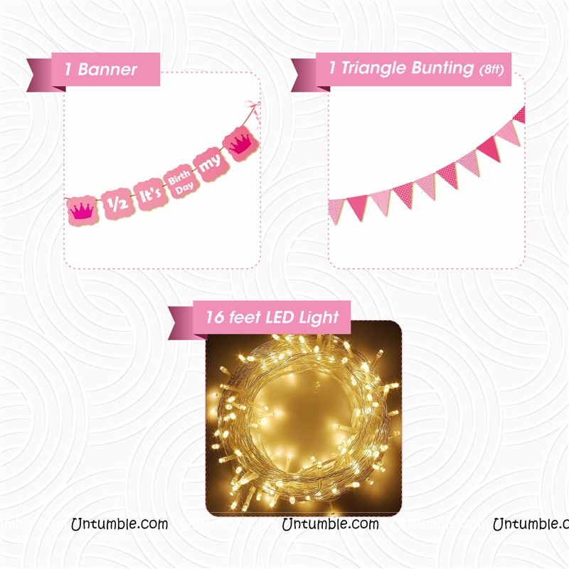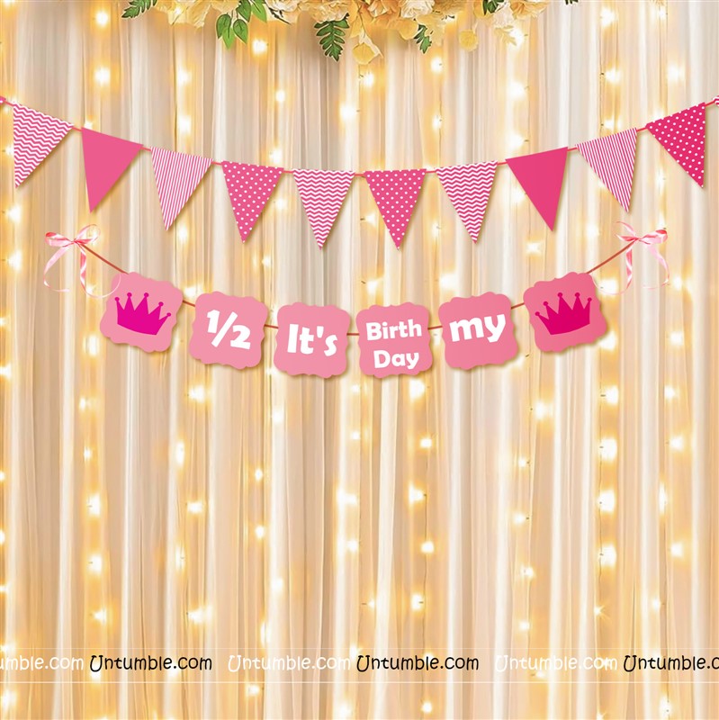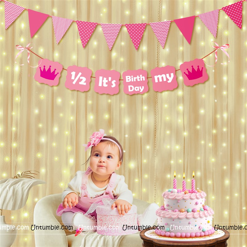 Half Birthday Backdrop and paper Fan Kit ( Pink )