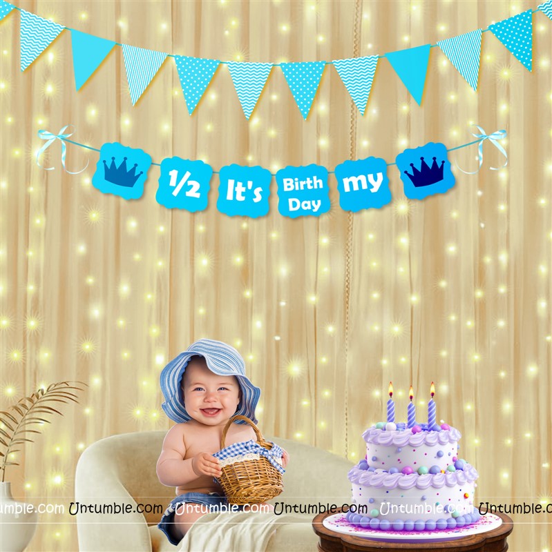 Half Birthday Backdrop ( Blue )