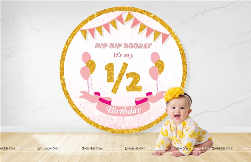 Half Birthday Backdrop and paper Fan Kit ( Pink )