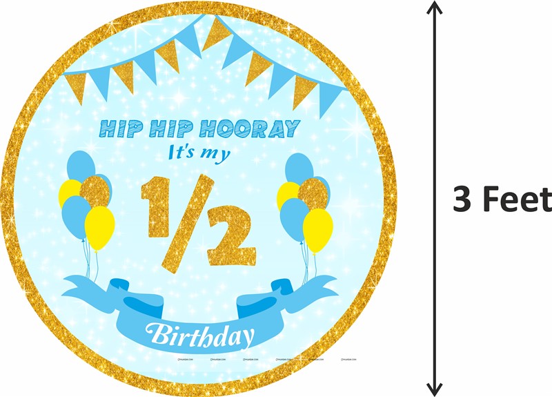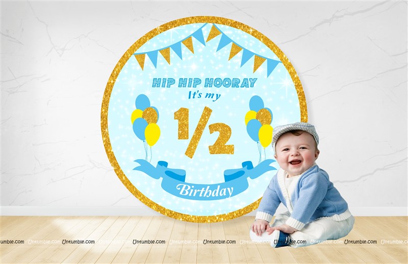 Half Birthday Backdrop and paper Fan Kit ( blue)