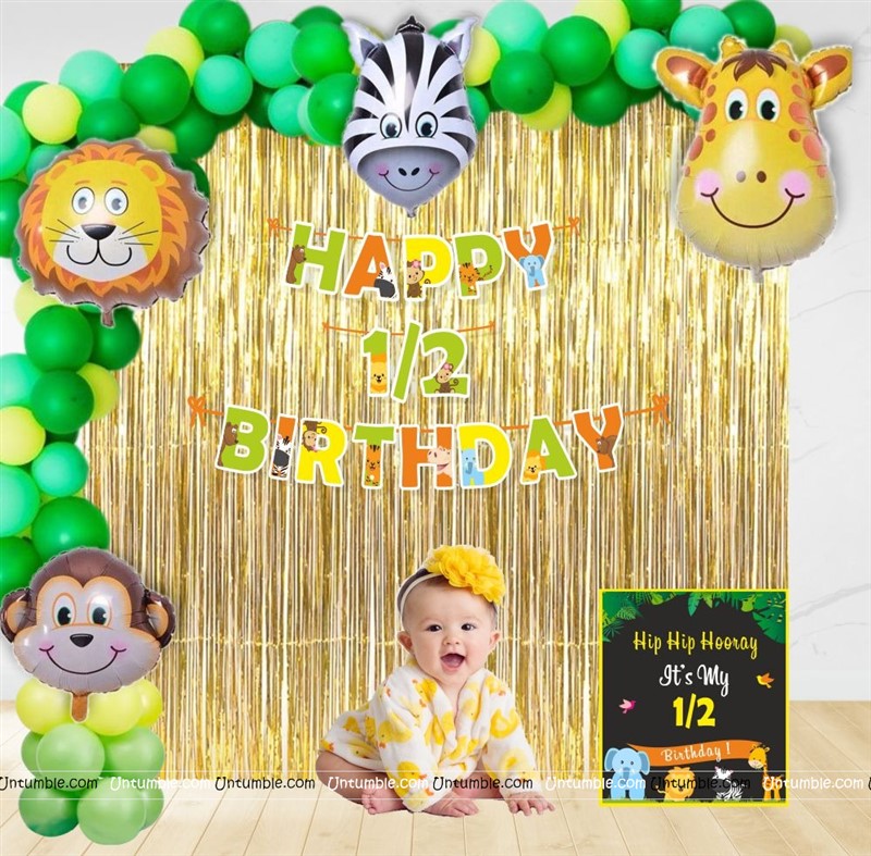 Six Month Birthday theme Pink Half Birthday party kit for a baby girl