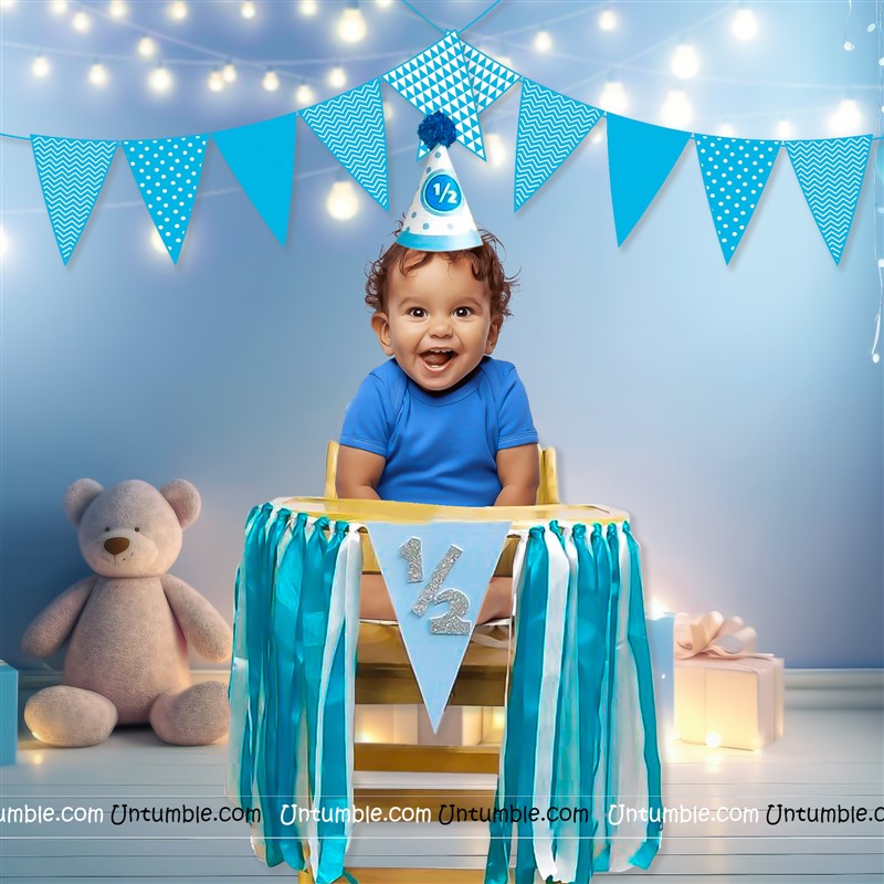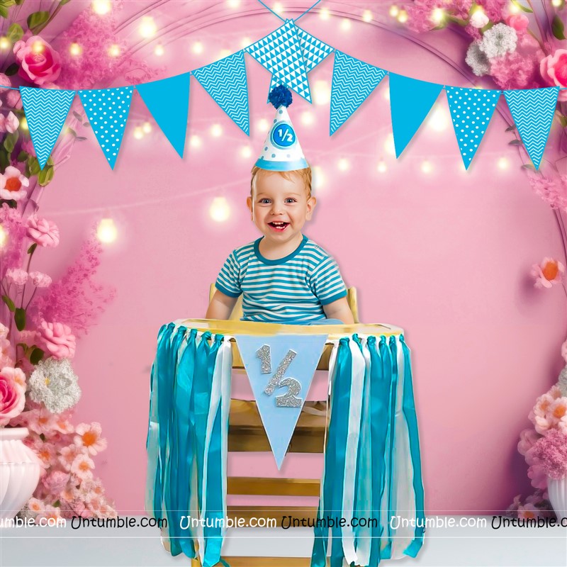 Half Birthday Backdrop ( Blue )