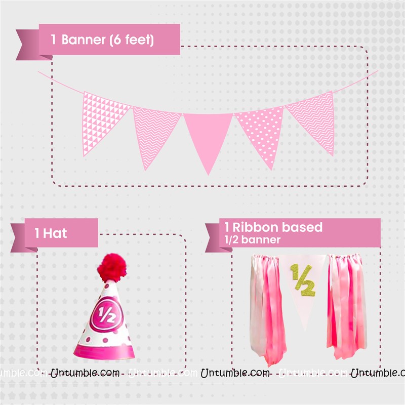 Six Month Birthday theme Pink Half Birthday party kit for a baby girl
