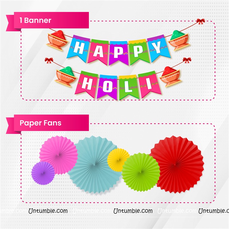 Happy Holi Banner & Photo Props ( Pack of 12 pcs)