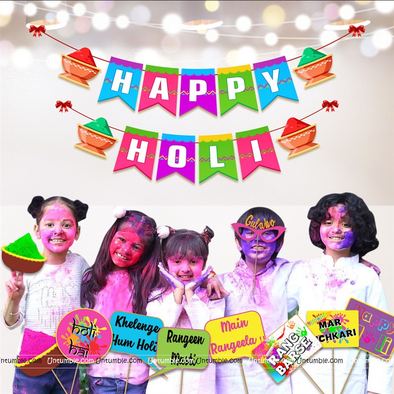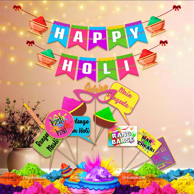 Holi Photo Props with 111 Balloons (Pack of 122)