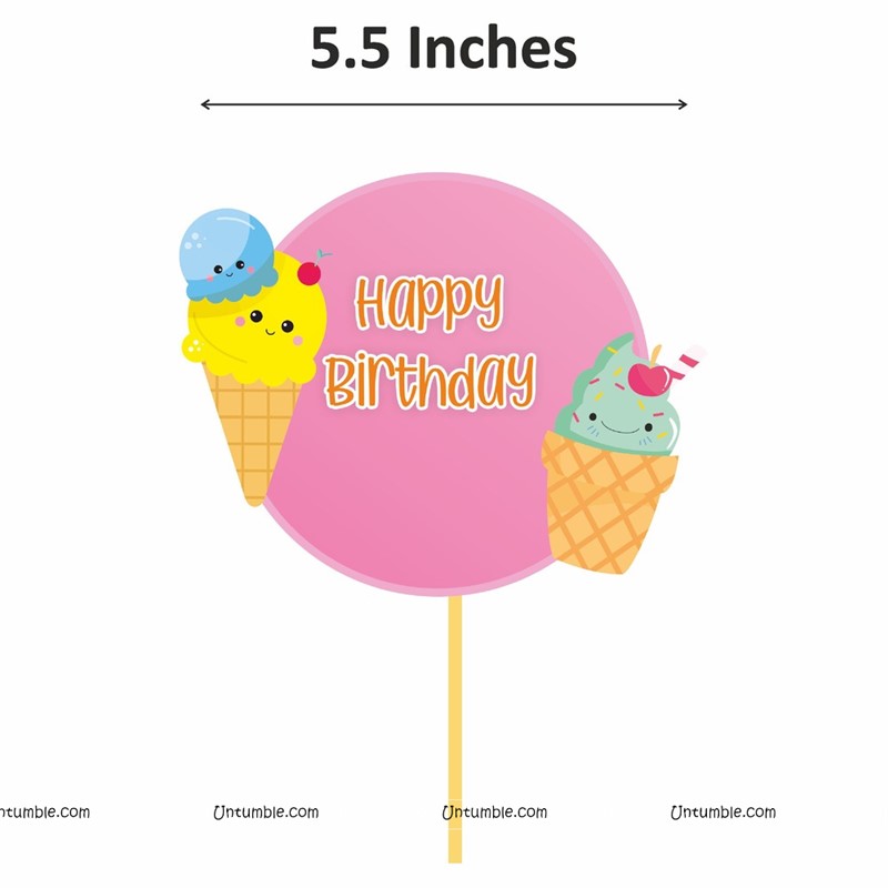 Ice Cream Theme Happy Birthday Backdrop 4 feet x 4 feet, Pack of 1