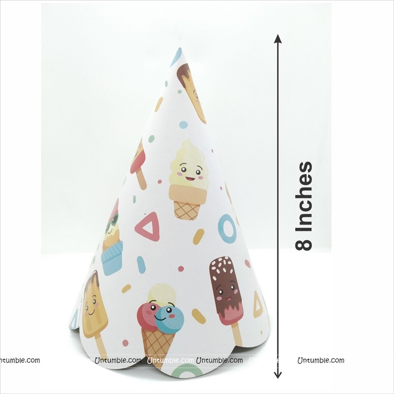 A party is incomplete without hats. These fully customized hats are printed to the theme and can incorporate a name and a snippet of text.