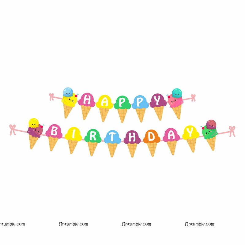 Ice Cream Theme Happy Birthday Backdrop 4 feet x 4 feet, Pack of 1