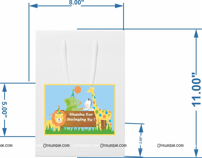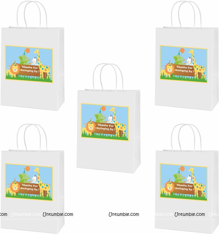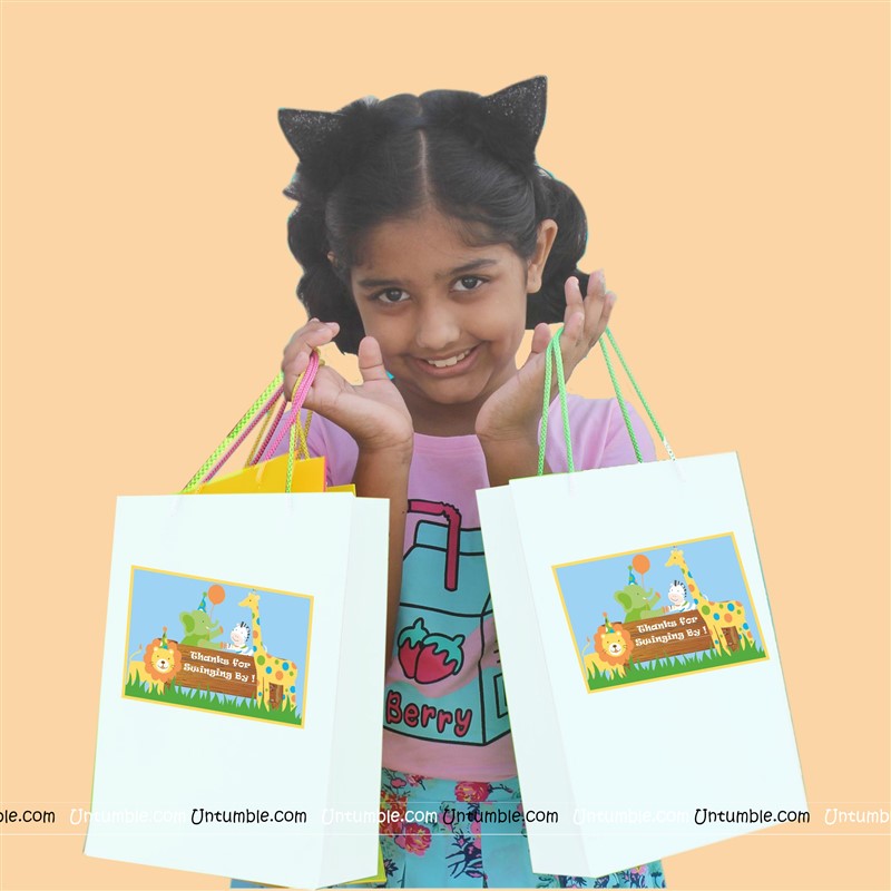 Customized return gift bag based on the theme. White bag with a theme based customized sticker on the front side.