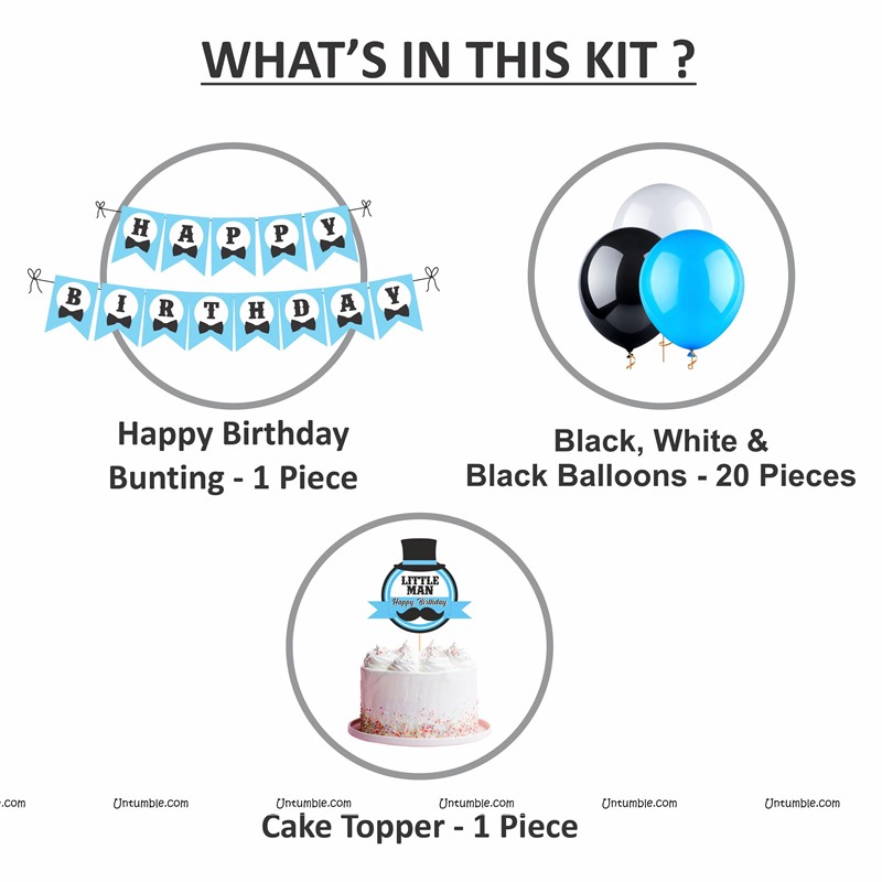 Little Man Super saver birthday decoration kit (Pack of 58 pieces)