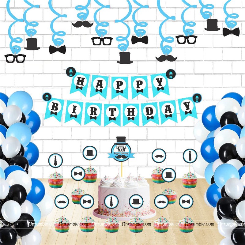 Little Man Super saver birthday decoration kit (Pack of 58 pieces)
