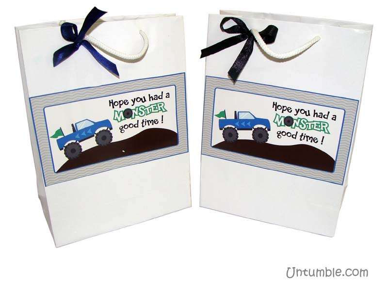 Customized return gift bag based on the theme. White bag with a theme based customized sticker on the front side.