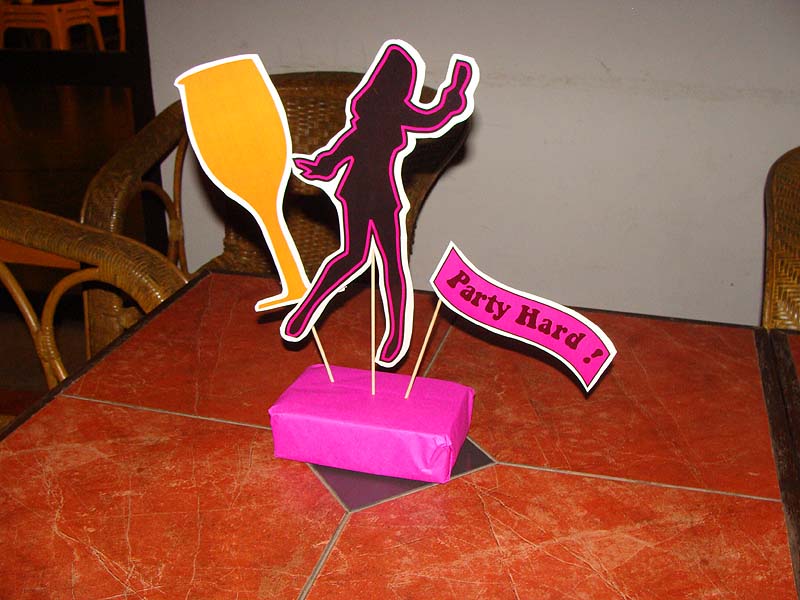 Several different options to pick from - 1. Skewers with toppers poked on a thermocol base or cup cakes2. Sided artboard centerpiece