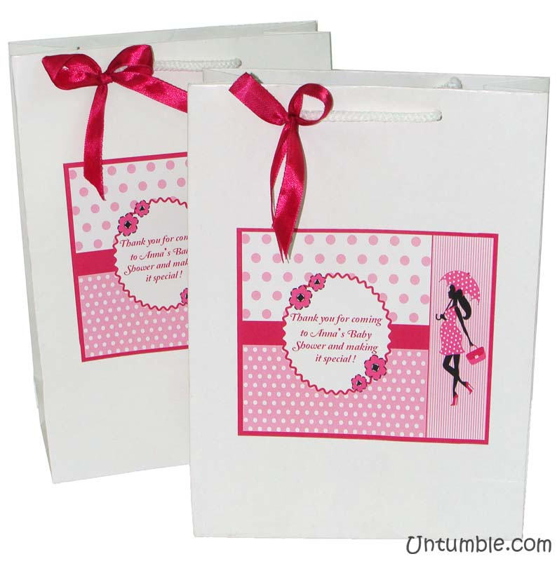 Customized return gift bag based on the theme. White bag with a theme based customized sticker on the front side.