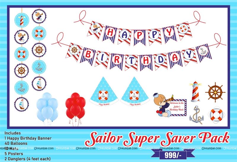 Sailor theme Super saver birthday decoration kit (Pack of 58 pieces)