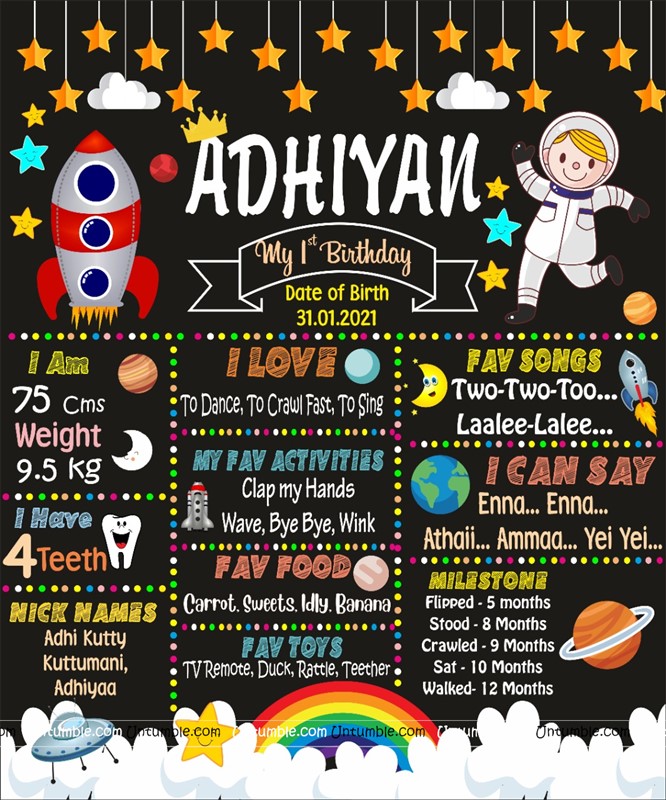 Personalized birthday chalkboard posters made of foam board. Custom printed with the info about your child provied in the form provided.