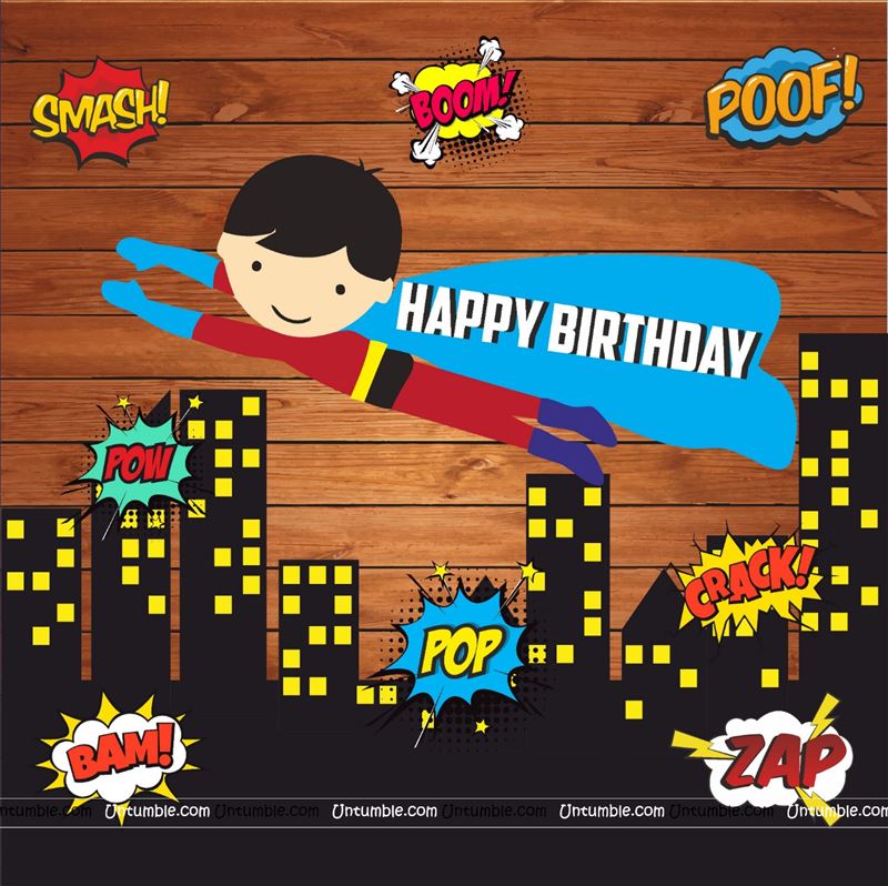 Super Hero Theme Yellow Background Backdrop, Pack of 1