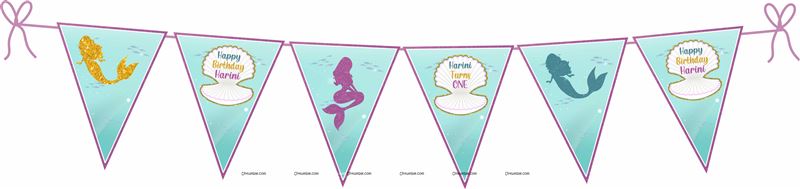 Mermaid Theme Triangle Bunting (10 ft)