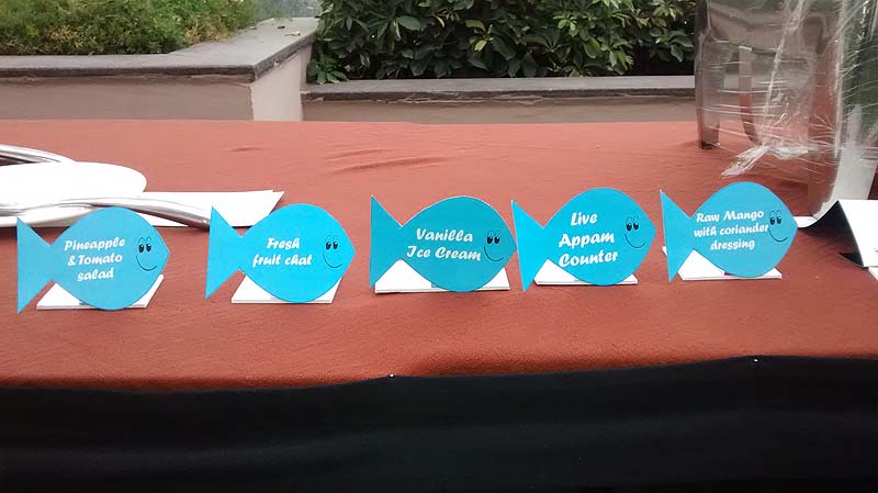 Theme based food labels that has the menu item printed on it.