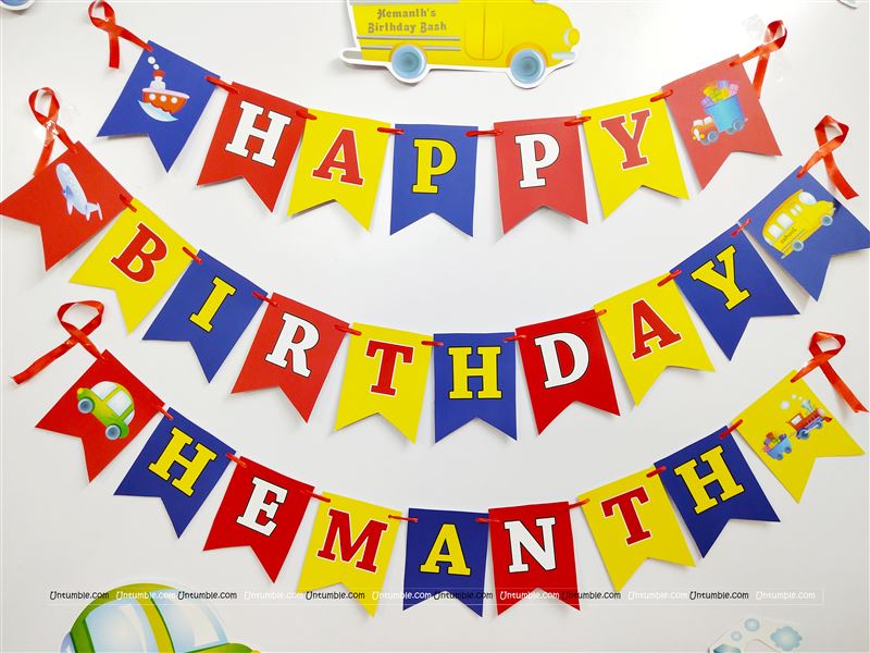 Happy Birthday Banners personalized with a name and age. Available for all ages. Apt for home parties. Milestone ages 1st birthday to 80th available online.