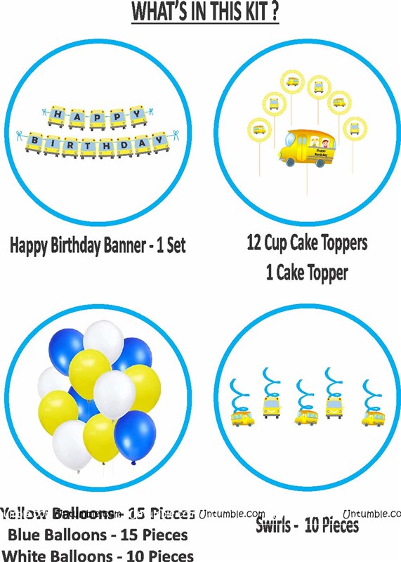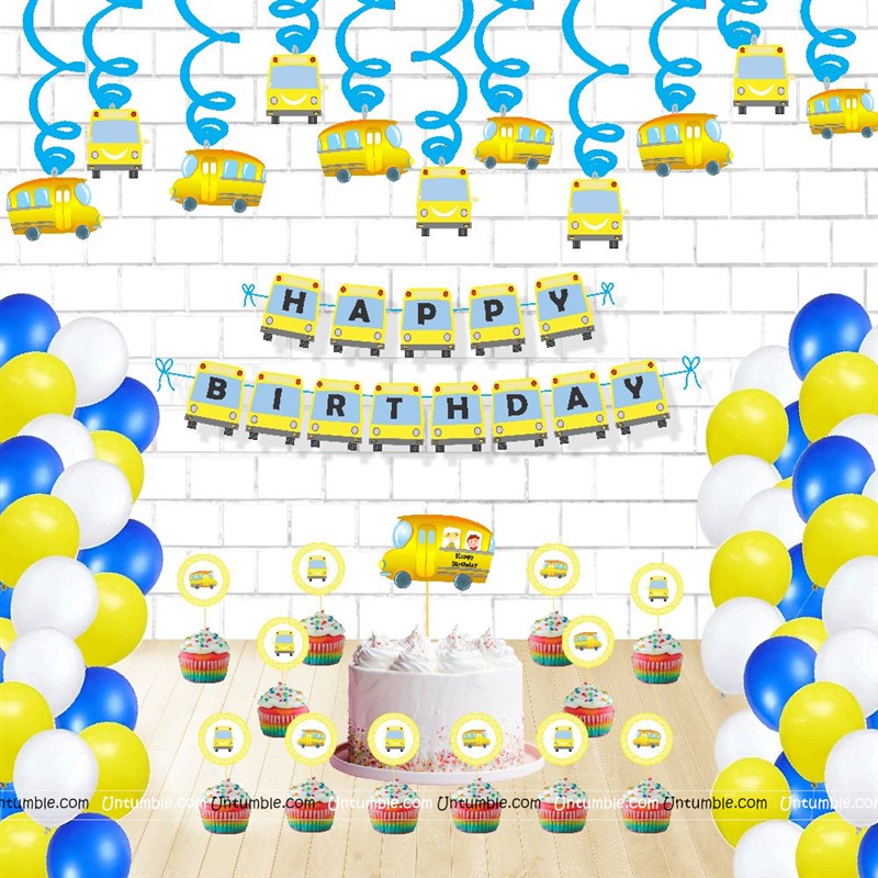 Wheels on the bus Super saver birthday decoration kit (Pack of 58 pieces)