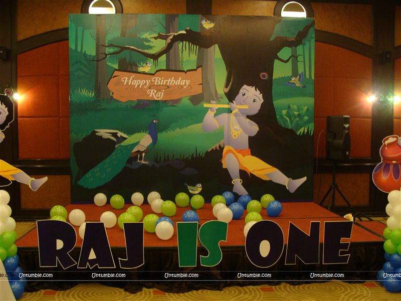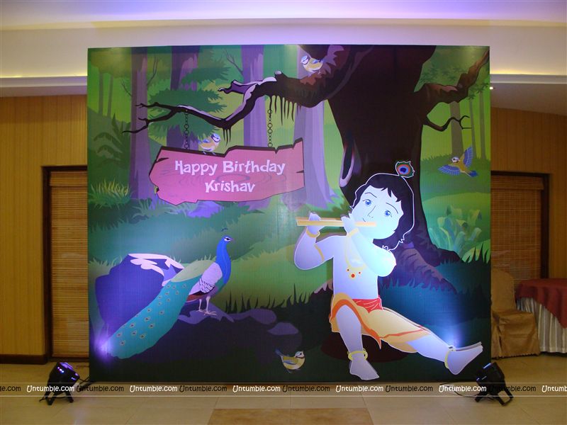 At Untumble, we offer a variety of party items with little Lord Krishna infused into them in delightful ways. At the very outset, you can send out adorable Krishna themed invitations and let your closed ones know about the surreal experience they can expect at your child’s birthday party. We also offer cheerful Krishna decorations like welcome banners and entrance banners that will light up the mood of your guests as they enter the party.
